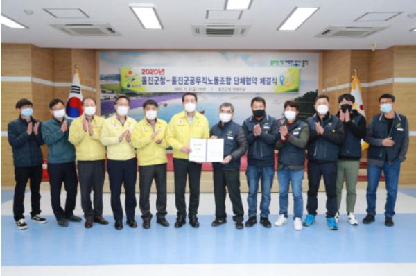 울진군은 6일 울진군청 대회의실에서 울진군공무직노동조합과 단체협약 체결식을 가졌다.