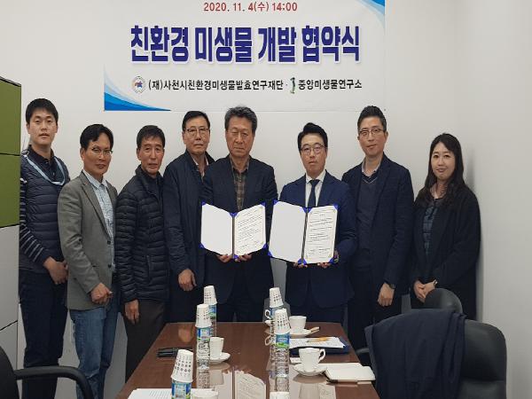 (재)사천시친환경미생물발효연구재단은 11월 4일 미생물분야의 대표적 기업인 중앙미생물연구소와 친환경 미생물 개발 협약을 체결했다.
