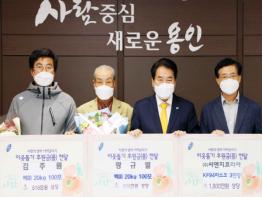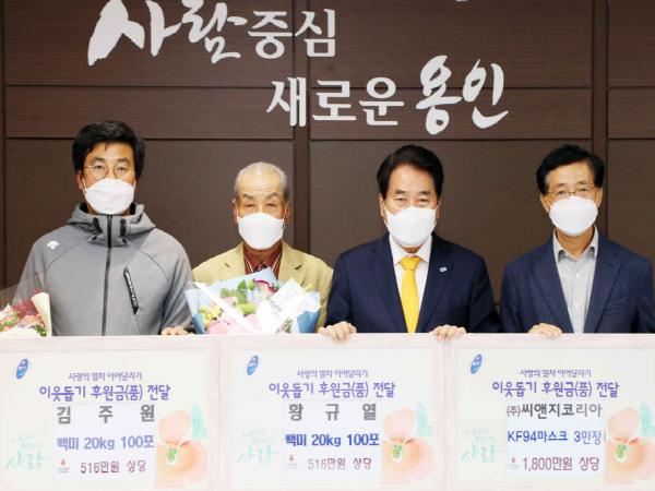 용인시는 6일 관내 마스크제조업체 ㈜씨앤지코리아와 백암면 주민 황규열?김주원씨가 어려운 이웃을 돕는데 써달라며 성품을 기탁했다고 밝혔다.