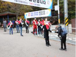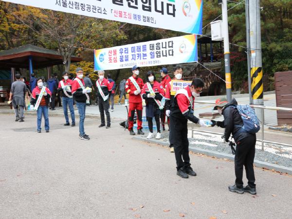 이번 산불예방 캠페인은 단풍철을 맞아 소래산 산림욕장을 찾은 행랑객과 등산객들에게 우리 숲의 소중함과 산불예방의 중요성을 알리고, 산림 내 인화 물질 소지 금지 등 산불예방 캠페인과 더불어 등산로 및 산림욕장 주변의 쓰레기 수거를 통한 산지정화 활동도 병행하여 실시하였다.