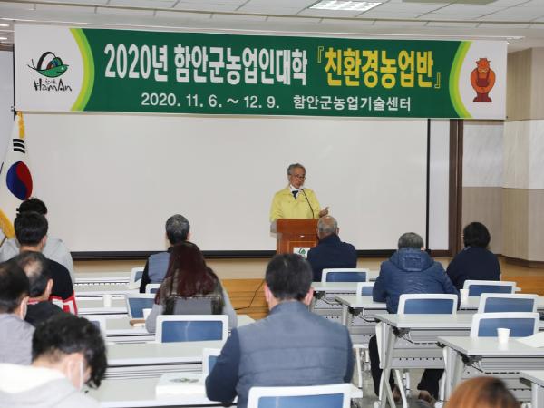 함안군농업기술센터는 6일 농업기술센터 농업인회관에서 수강생 32명이 참석한 가운데 함안군농업인대학 친환경농업반 개강식을 개최했다.