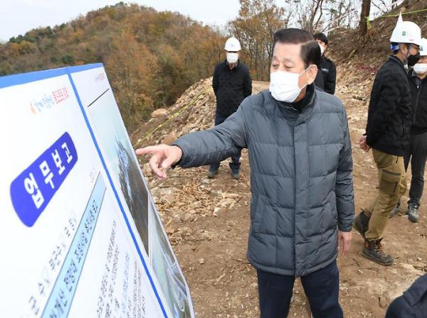 유천호 군수는 지난 5일 교동면 화개산관광자원화사업 현장을 방문해 공사진행 사항을 점검하고 관계자들을 격려했다.