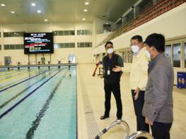 안동우 제주시장은 11월 5일 제주시 종합경기장 실내수영장을 방문하여 공공체육시설 운영 재개에 따른 현장상황을 점검했습니다.