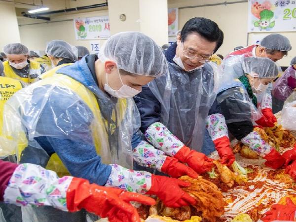 성장현 용산구청장은 “매년 2000명의 봉사자들이 참여, 축제의 장처럼 김장을 담았지만 올해는 여의치 못하다”며 “완제품으로나마 정성을 전하고 저소득 주민들의 겨울나기를 도울 것”이라고 말했다.