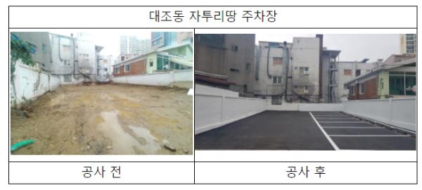 은평구 관계자는 “버려진 공간을 주차장으로 재탄생시켜 토지 효율도 높이고, 주차난으로 인한 이웃 간 갈등도 해소할 수 있게 됐다”며 “나눔과 효율 두 가지를 잡는 자투리땅 주차장 조성에 구민의 적극적인 참여를 부탁드린다”고 말했다.
