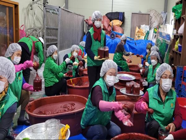 고추장 담그기 나눔은 소외되고 어려운 이웃을 위한 사업으로, 부녀지도자 70여명이 참여해 사랑의 정이 담긴 고추장 1.65㎏들이 600여개를 담아 13개 읍·면 독거노인, 장애우가정, 복지시설 등 관내 이웃에 전달했다.