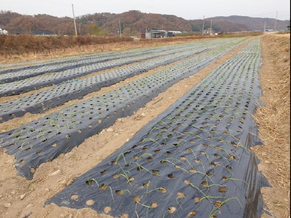 해당 부지에는 지난 6월에 1차로 콩나물 콩을 식재하고 10월에 추수한 후 곧바로 2차로 10월에 동계 작물로 양파를 식재해 생육 중이다.