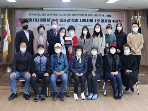 안성시 안성맞춤시니어클럽은 한국보건산업진흥원이 기획한 ‘靑老 일자리’ 창출사업을 7월부터 시범 진행하여 성과를 걷어 진흥원으로부터 감사패를 전달받았다고 밝혔다.