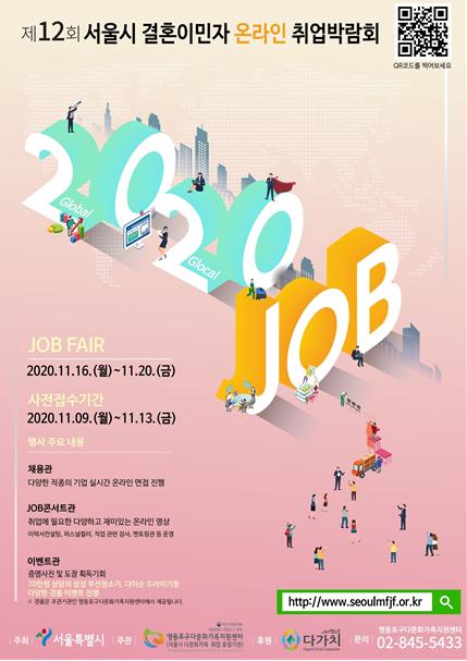 서울시는 오는 11월 16일(월)~11월 20일(금) 5일간, 코로나19 상황에 대응해 비대면으로 ‘제12회 서울시 결혼이민자 온라인 취업박람회’를 개최한다.