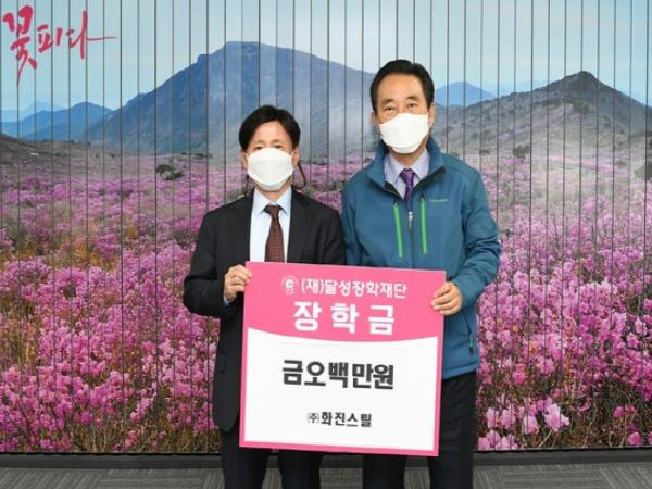 ㈜화진스틸(대표 윤승희)은 지난 5일 달성군청을 찾아 500만 원의 기탁금을 (재)달성장학재단에 전달했다.