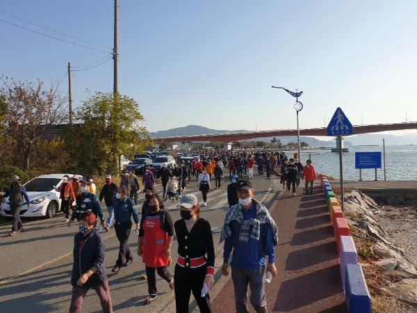 사천 용현면은 지난 7일 오후 사천대교 아래 거북선 체험마을 광장에서 2020년 용현면 무지개 해안도로 건강걷기대회를 개최했다고 9일 밝혔다.