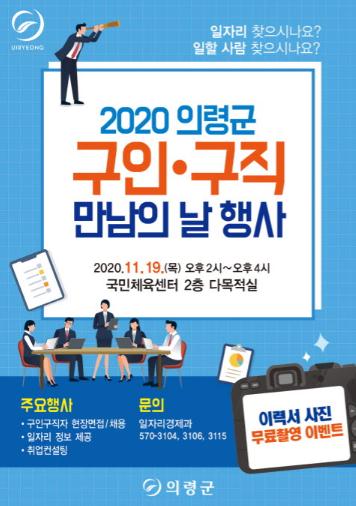 의령군은 오는 19일 국민체육센터 2층 다목적실에서 '구인·구직 만남의 날' 행사를 개최한다고 밝혔다.