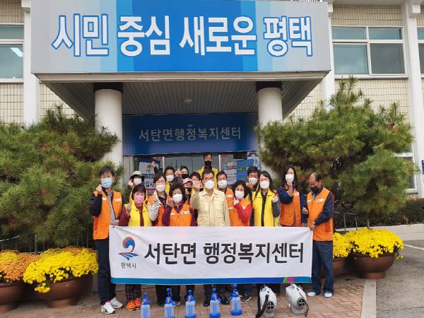 평택시 서탄면행정복지센터(면장 황선형)는 지난 6일 지역발전에 앞장서는 관내 단체 회원들과 함께 코로나19 지역사회 확산 방지를 위해 버스정류장, 공공기관 등 관내 다중이용시설을 돌며 소독 및 방역활동을 펼쳤다.