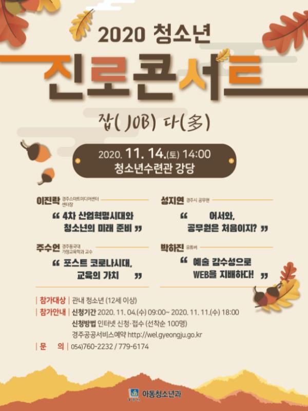 청소년 진로 콘서트 job多는 경주공공서비스예약 시스템을 통해 11일 오후 6시까지 100명 내외의 참가 청소년을 모집하고 있다.