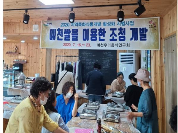 예천우리음식연구회가 코로나19로 중단했던 지역특화 식품개발 활성화 시범사업을 예천군농업기술센터 조리실습실에서 재개한다고 밝혔다.