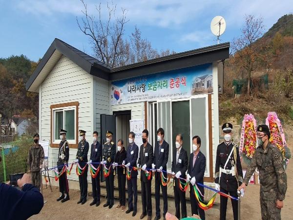 육군 37사단 주관으로 열린 이번 준공식에는 고창준 육군37사단장, 이철희 군 행정복지국장, 오영탁 도의원, 조성룡 군의원 등 관계자와 주민 40여명이 참석했으며, 공사 경과보고를 시작으로 테이프 커팅, 현판 제막식에 이어 완공 주택을 살펴보며 참전용사 가정을 위한 새 보금자리 마련을 기념했다.