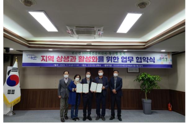 지역의 건강문제 해결을 위해 모인 연산면 100세건강위원회와 연산면 도농교류센터 황산벌 둥지가 지역 활성화와 상생을 위한 업무협약을 체결했다.