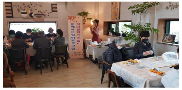 김제시 보건소 치매안심센터는 지난 6일, 김제시 시민공원 옆 나루카페에서 치매환자 및 가족 20여명을 대상으로 ‘치매환자와 가족이 함께하는 치매가족 힐링프로그램’을 운영하였다.