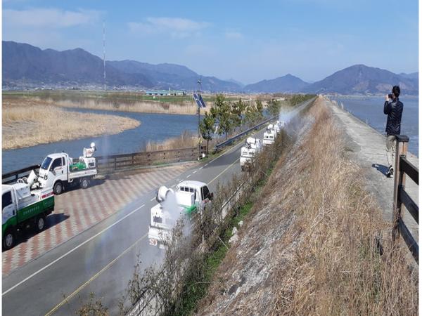 특히, 군 방역차량과 공동방제단이 함께 주 3회 이상 득량만 철새 도래지 일원에 대한 소독을 실시하고 있으며, 철새 도래지 인근 진·출입로에 현수막과 출입통제 입간판 등을 설치하여 가금농가 관계자는 철새 도래지에 일절 출입할 수 없도록 지도하고 있다.