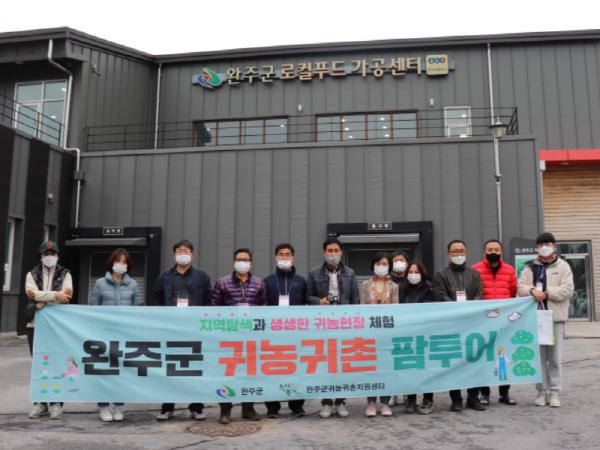 완주군은 매년 귀농귀촌 교육 및 지역탐방을 할 수 있는 팜투어 교육을 진행하고 있으며, 도시민들이 많은 것을 보고 갈 수 있도록 알찬 교육프로그램으로 구성하고 있다.