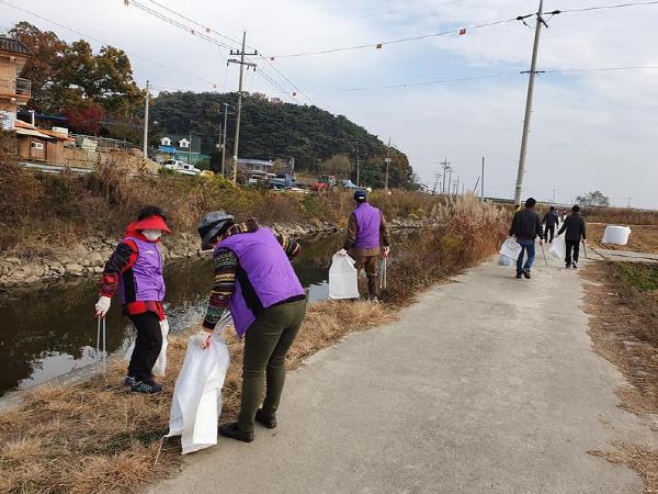 이날 협의체 회원 20여 명은 비와 바람으로 상류로부터 떠 내려온 스티로폼 및 페트병 등 하천뚝과 풀숲에 널려져 있는 각종 생활쓰레기 수거에 이른 아침부터 구슬땀을 흘렸다.
