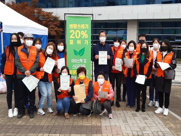 이번 캠페인은 남양주시에서 진행 중인 쓰레기 20% 감량을 위한 재사용 아이스팩 수거 사업을 시민들에게 홍보하기 위해 실시되었으며, 회원들은 아이스팩을 많이 사용하는 인근 상가 업체 및 주민들을 대상으로 안내문을 전달하고, 아이스팩 모으기 참여를 독려했다.