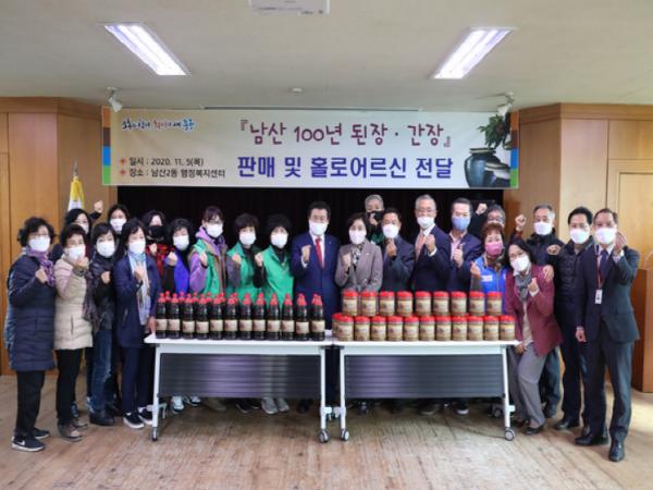 대구시 중구 남산2동 협의단체 회원들은 지난 5일 남산2동행정복지센터에서 관내 저소득 홀로어르신을 위한『남산100년 된장·간장 판매 및 무료전달식』행사를 가졌다.