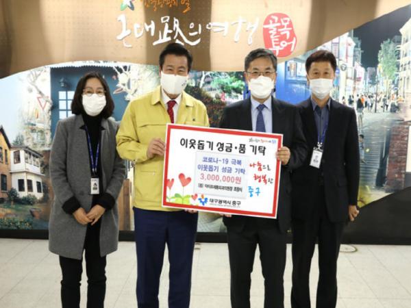 이번에 기탁된 성금은 중구 관내 코로나-19로 인해 어려움을 격고 있는 독거노인, 장애인, 다문화가정 등 이웃들에게 소중하게 전달될 예정이다.