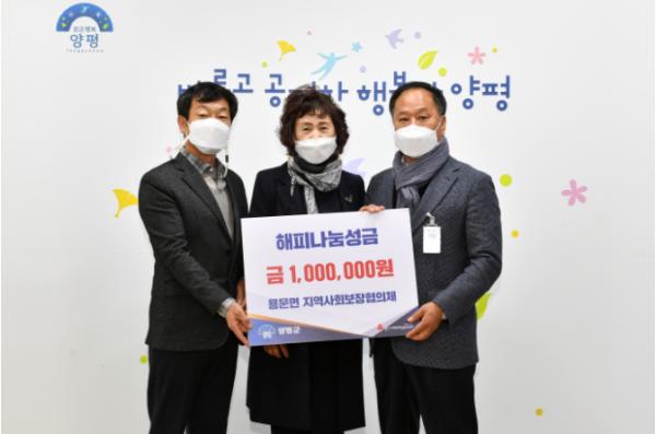 양평군 용문면 지역사회보장협의체에서는 지난 9일, ‘사랑의 연탄 모으기 운동’에 성금 100만원을 기탁했다고 밝혔다.