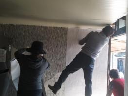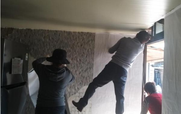 첫째 날 지붕을 덮고 늘어진 천정과 낡은 싱크대, 주방 살림 등 1톤가량의 폐기물을 처리하고 천정공사를, 둘째 날 도배지를 바르고 장판을 새로 깔고 싱크대와 가스레인지 교체하는 이틀간의 공사를 마무리했다.