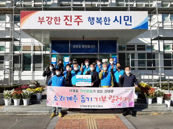 한국자유총연맹 진주시지회 상대동분회(회장 성주용)는 지난 9일 ‘사계절 마르지 않는 기부릴레이’에 동참하여 올해 사랑의 김장나눔 행사에 쓰일 김장재료 마련을 위한 성품(온누리상품권 20만원)을 기탁했다.