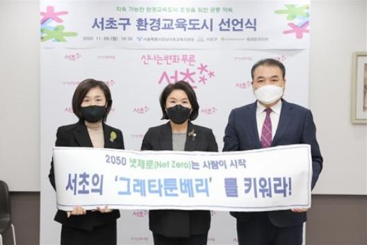 서초구는 파리기후협약에 따른 신기후체제 시행을 2달 여 앞두고 2050 넷제로(탄소순배출제로)를 위해 2020년 11월 9일 서울특별시강남서초교육지원청(교육장 김용호), (사)에코맘코리아(대표 하지원)와 서울시 최초로 환경교육도시 선언을 하였다.