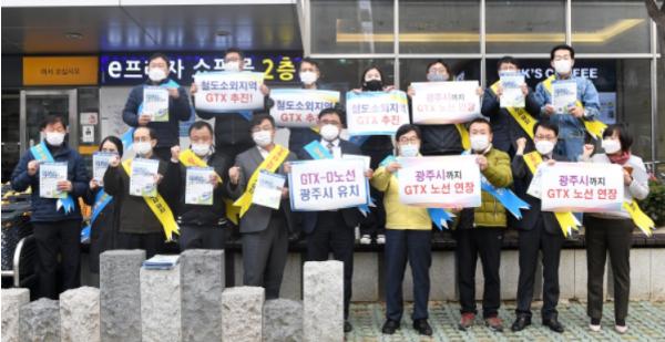 한편, 지난 10월 15일 청와대 국민청원 홈페이지에 ‘GTX-D 노선을 광주로 이어지게 해달라’는 청원이 올라온 이후 시민단체를 중심으로 범시민추진위원회가 구성됐으며 GTX-D 노선 광주 유치 조성에 적극적으로 나서고 있다고 전했다.