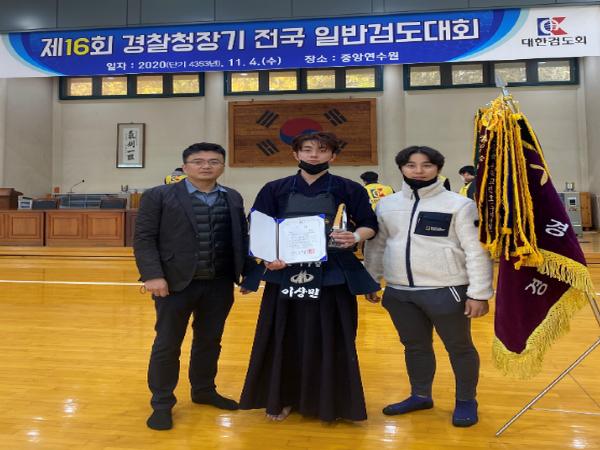 이상민 선수는 지난 4일 충남 음성군 소재 대한검도회 중앙연수원에서 열린 ‘제16회 경찰청장기 전국 일반검도대회’ 결승전에서 인천시청 황영하 선수와 맞붙어 1:0으로 승리했다.