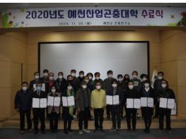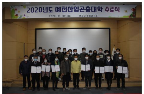 예천군은 9일 오후 4시 예천군곤충연구소 곤충생태체험관에서 곤충산업 전문인력 육성을 위한 ‘2020년도 예천산업곤충대학’ 수료식을 개최했다.