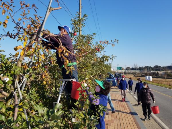 예산군 응봉면 행정복지센터는 9일 면 직원들과 응봉면새마을협의회원 20여명이 참여한 가운데 가로수 사과나무 수확작업을 실시했다.