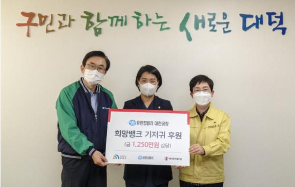 대전시 대덕구는 유한킴벌리 대전공장과 세이브더칠드런 서부지부로부터 10일 ‘희망뱅크 기저귀’ 전달식을 가졌다.