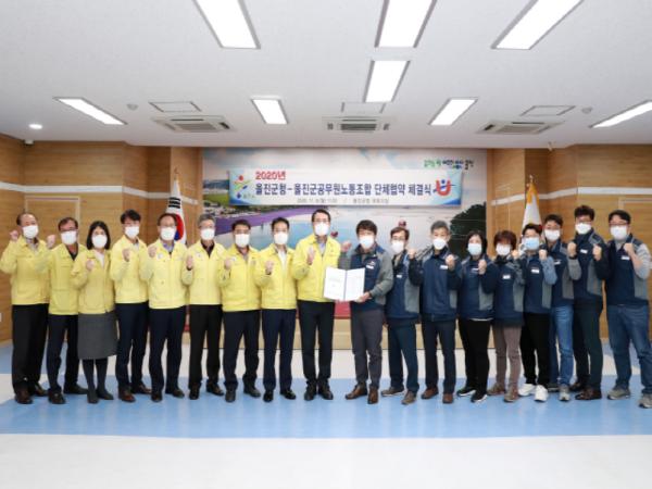 울진군과 공무원노조와의 단체교섭은 2019년 노조 설립후 최초 체결이며, 단체협약 내용은 전문 109개 조항과 부칙 8개 조항으로 구성,조합의 활동보장 및 조합원의 노동조건, 인사제도 개선, 교육훈련, 모성보호, 공직사회 개혁과 부정부패 척결, 직원 후생복지 등의 규정이 주를 이루고 있다.