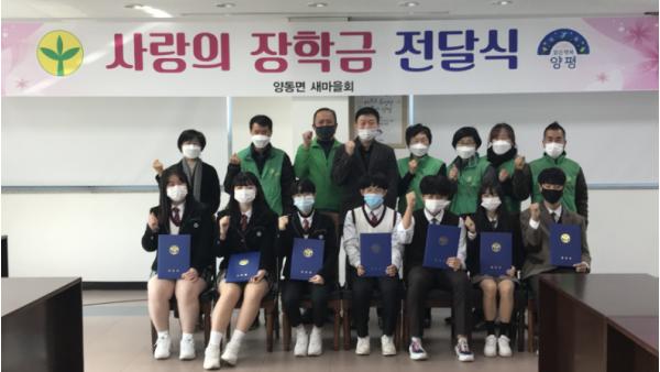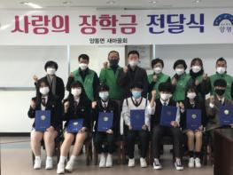 양평군 양동면 새마을회는 지난 9일 양동면사무소에서 관내 학생들에게 장학금 240만원을 전달하기 위한 ‘사랑의 장학금 전달식’을 가졌다고 밝혔다.
