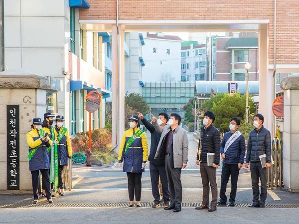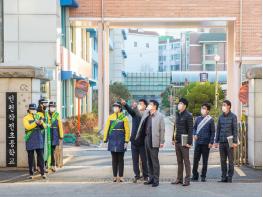 박형우 구청장은 학교 주변 어린이 보호구역 구석구석을 살폈다. 쓰레기 무단투기, 통학로 불법 주정차, 불법 광고물에 대한 단속 등 어린이 통학에 위험이 될 만한 요소 및 취약사항을 집중 점검했다.