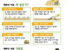 패화석 비료는 알카리분을 40% 이상 함유하고 있어 산성토양 개량, 토양의 물리성과 미생물상 개선, 작물의 수량 증대와 품질 향상 등에 효과가 있다.