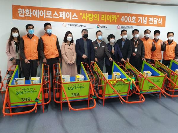 이번 전달식은 2014년부터 한화에어로스페이스(사업장장 남형욱)와 함께 제작 전달해온 사랑의 리어카 지원 대수 총 400대 달성을 기념하기 위한 행사로 자원봉사자들의 노고를 치하하고 사기를 진작시키기 위해 마련되었다.