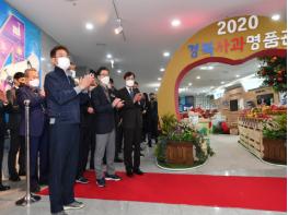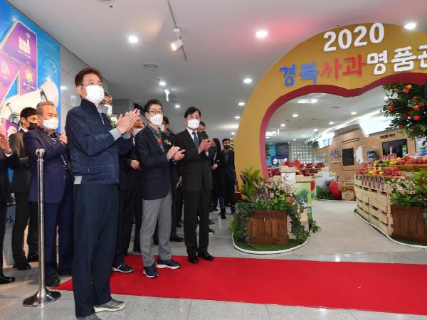 경북사과 온라인 홍보행사의 일환으로 개최된 경북사과명품관 개관 행사는 이철우 경북도지사를 비롯한 손규삼 대구경북능금농협조합장, 사과주산지시장군수협의회 회장인 최기문 영천시장과 부회장인 김영만 군위군수, 권영세 안동시장, 장욱현 영주시장, 김학동 예천군수, 김춘안 농협중앙회 경북본부장 등 코로나19 확산방지를 위해 최소의 인원만 참석해 테이프 커팅으로 경북사과 홍보행사의 시작을 알렸다.