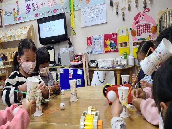 강의 첫날 수업은 중국출신 여성결혼이민자 강사 유호순씨가 삼가어린이집과 초계지역아동센터 이용 아동을 대상으로 세계 여러 나라 전통놀이에 대해 알아보고 일본전통놀이 켄다마를 만들어 함께 놀아보는 시간을 가졌다. 교육에 참여한 아동들은 우리나라와 비슷한 놀이들을 다른 나라 아이들도 하고 있다는 것을 신기해하며 즐겁게 따라 하는 모습을 보였다.