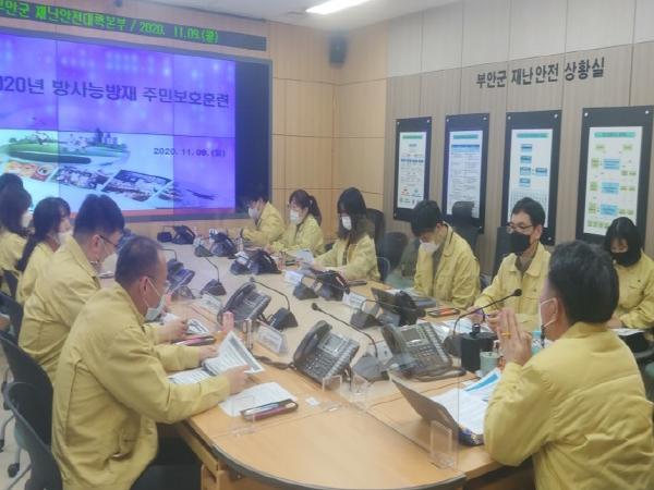 부안군은 지난 9일 군청 재난상황실에서 2020년 한빛원전 방사능방재 주민보호훈련을 실시했다.