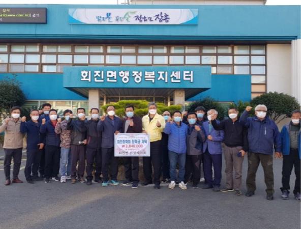 장흥 회진면이장자치회는 지역인재 양성을 위해 사용해 달라며 회진장학회에 장학금 384만원을 기탁했다.