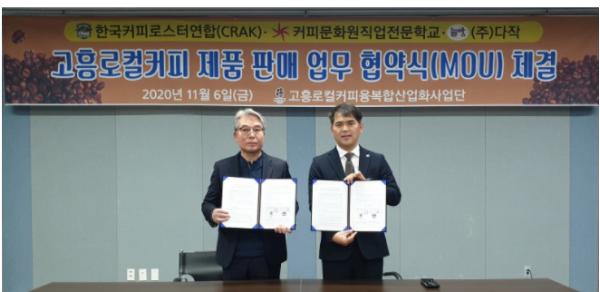 고흥군은 국내 최대 커피 주산지인 고흥커피 산업발전을 위해 내외부 상호간 유기적인 협력체계를 구축하여 고흥커피 생산 및 가공제품 판매 활성화 및 공동마케팅 추진을 위해 지난 6일 고흥로컬커피 융복합산업단(이하 사업단)이 한국커피교육 직업전문학교 등 외부전문 기관 및 업체와 상생의 업무 협약을 체결하였다고 밝혔다.