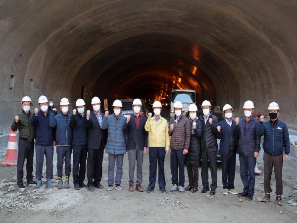 이후 공사가 한창인 터널 내부로 진입, 현장을 직접 확인하는 한편 관계자들의 애로사항을 듣고 근로자들을 격려했다.
