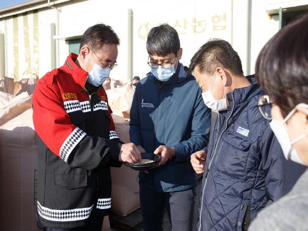 10월 12일부터 매입을 시작한 산물벼 800톤을 11월 6일까지 매입하 였으며, 11월 10일부터 시작하는 건조벼 매입은 출하 시 13~15% 수분을 유지한 상태로 지역별 매입 일정에 맞춰 지정된 장소에서 매입한다.