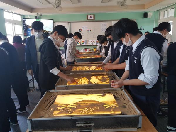 지난 9일 안덕중학교 1학년 85명을 대상으로 다양한 장르의 영화를 통해 소통하면서 자신을 재발견하고 그로인해 치유를 받는 시네마테라피(인문학강연)와 제주를 주제로 하여 모래로 표현해보는 샌드아트 체험, 재활용품을 열쇠고리와 같은 생활에 유용한 소품으로 만들어보는 업사이클링 생활소품 만들기가 진행되어 큰 호응을 얻었다.